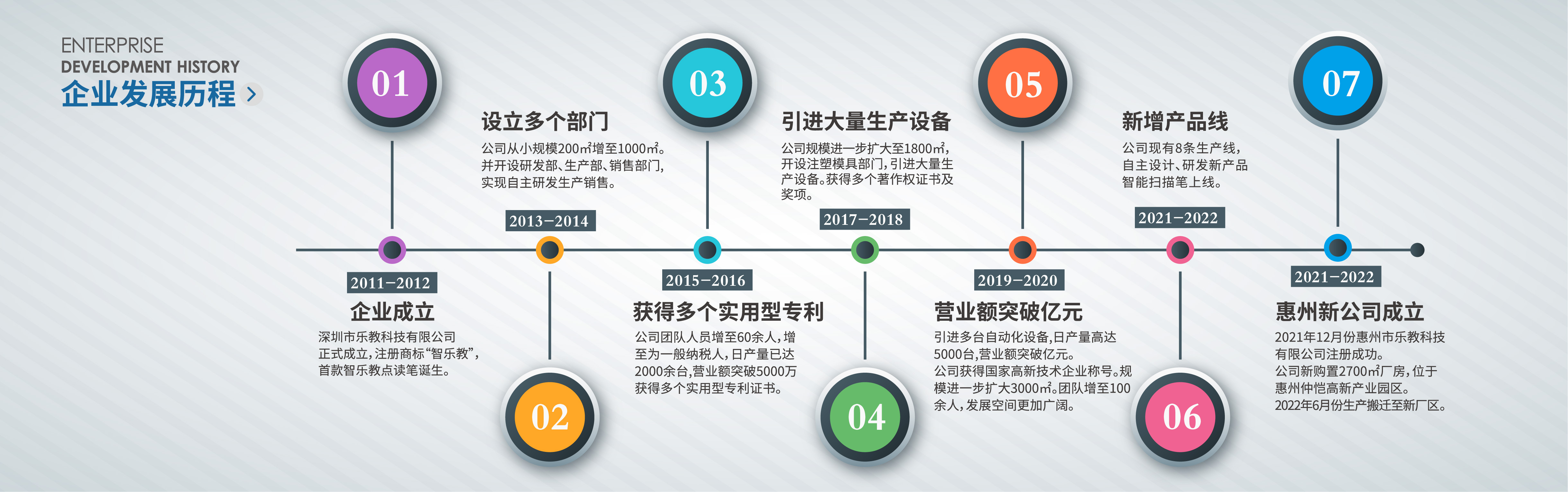 惠州市乐教科技有限公司,其根脉深植于深圳市乐教科技有限公司,是一家专注于点读笔、扫描笔及其系列产品的研发、生产和销售的国家高新技术企业。历经十几载风雨,研发生产经验丰富,于2022年6月,迁址惠州市仲恺高新区星河人工智能产业园(自购厂房),更高标准服务于客户,共创共赢。